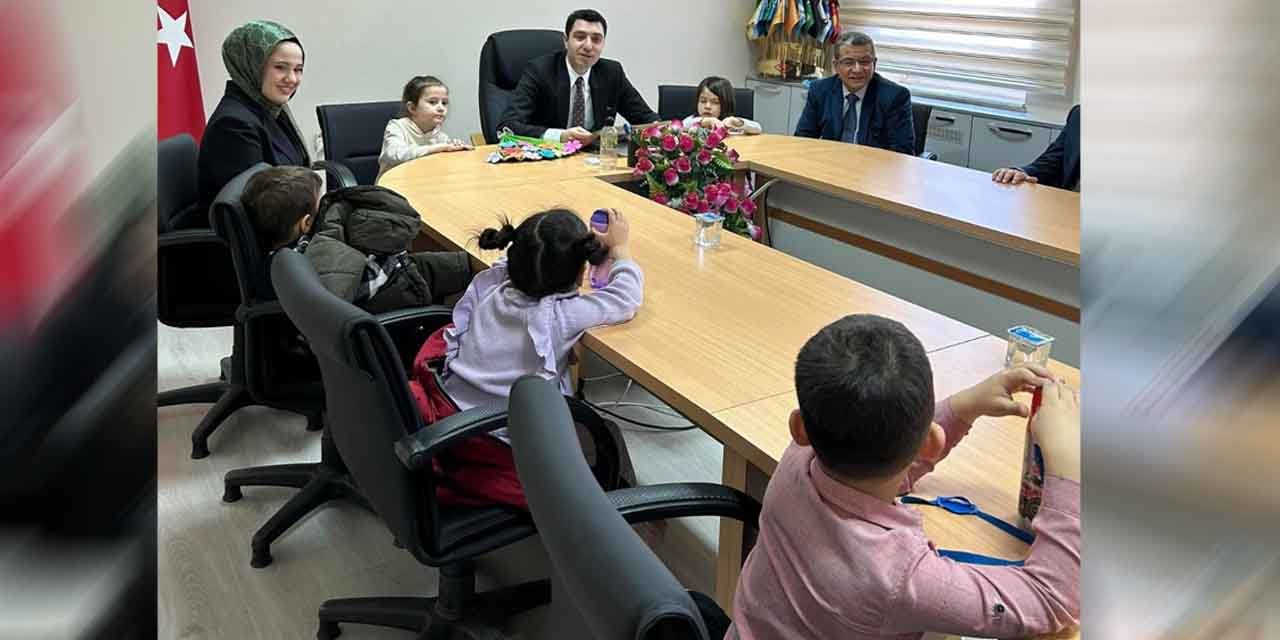 Karakeçili Kaymakamı İbrahim Ergün, İstiklal Marşı'nı ezbere okuma yarışmasında dereceye giren öğrenciler ile Yeşilay Haftası kapsamında çeşitli etkinlikler düzenleyen anasınıfı öğrencilerini makamında kabul etti.